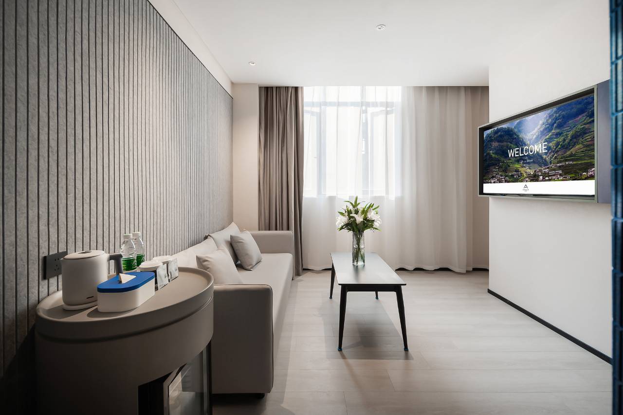 酒店内配套设施一应俱全,空间多样,公共空间融合了咖啡吧、洗衣房等新兴业态,给予住客更加个性化、多元化的体验。提供轻居特色早餐、酸奶、轻体水、华夫饼等,轻食早餐满足多种需求。客房床品均采用轻居特色质感裸棉,并配有日落灯、吸音棉、智能空调,带来舒适的睡眠环境。