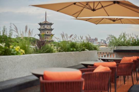 酒店环境很好很新,现代简约设计,位置绝佳,临近开元寺和西街,附近超级多好吃的,周围热闹,但是酒店闹中取静,一进酒店大门之后,里面超级安静。酒店细节做的不错,比如天热,大堂为住店客人准备的纯净水和手推车,随时自取,酒店自制的线香,味道超级好,很舒缓!酒店还为住店客人准备了一张逛吃攻略,干货满满,我们按照上面的推荐去吃,都好好吃!房间床品舒适,我们这次定的套房,洗漱间设计很加分,非常大的空间,泡澡超级舒服,还有化妆区,很满意。服务也是有求必应,回复快,交通指引细致!还有必须说的是酒店天台的无敌景观,能清晰看到开元寺东西塔,绝佳景观,晚上可以在酒店天台看电影喝鸡尾酒赏月,特别舒适!