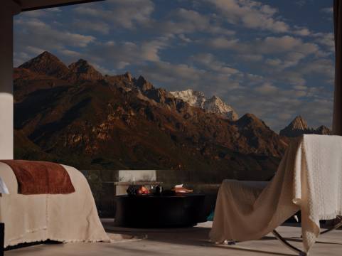 一睁眼在床上就可以看到日照金山的侘寂风民宿