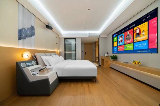 去看瀑布定的这家酒店,房间很大,基本上都是智能设施,有天猫精灵、投影仪、智能马桶,可以免费停车,房间也很干净,老板人很热情,十分推荐!
