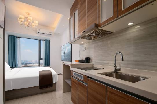 很好,房间该有的都有,吹风机的风力也很大,不像有些酒店的吹风机要吹很久才吹的,干,这个吹风机非常好。服务也很周到,一天一打扫。我和朋友出去玩了之后,回来发现房间干干净净的。什么都换成了新的。好,这个服务非常好。