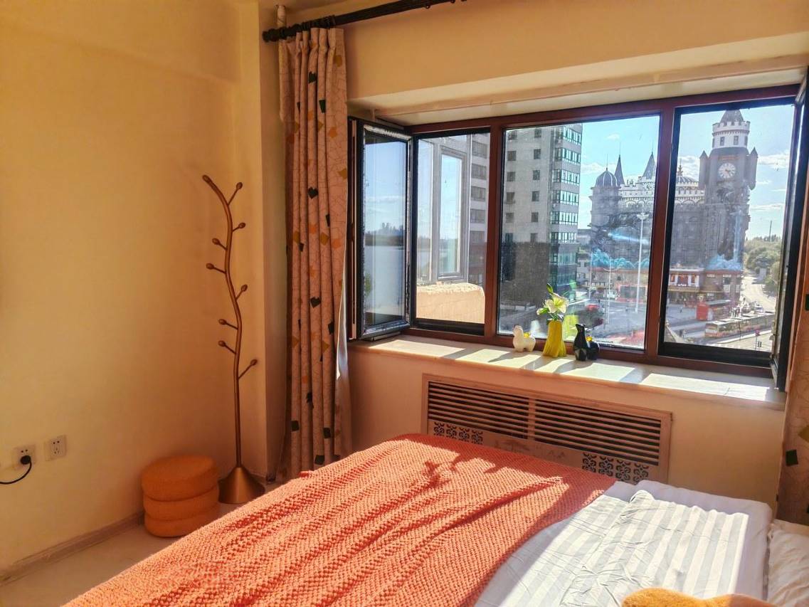 住在这个房间里虽然没有酒店的豪华,但就像回家—样的感觉,非常舒服。窗外是松花江边风景,几步远就是地铁站友谊宫站,旁边就是防洪纪念塔和中央大街,真是太方便我们一家人出游了。