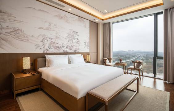 房间面积很大,干净。设施都是全新的,木质大地色系家具。最喜欢房间里的装饰山水画,宋元风格,很江南。每天早餐花样翻番,口感略甜点。午餐有时也在酒店吃,喜欢套餐里的鸡汤,五星级酒店品质。通过携程兑了欢迎水果。