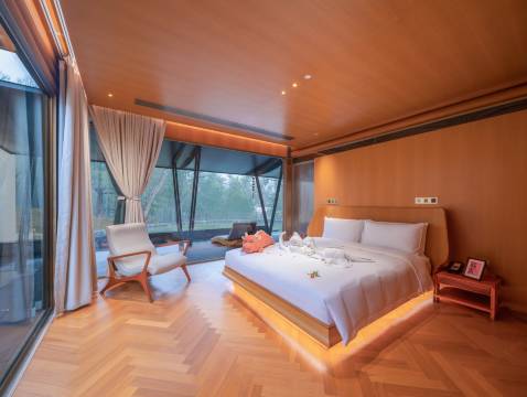 此外,还有配套健身房,草坪庆典广场,竹林秘境,茶园探索等户外体验空间,以自然为师,以文化为心,以艺术为情,“南山·君柠野奢酒店”是一种全新的酒店体验。