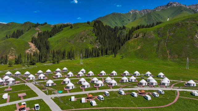 独库公路,一日看四季、十里不同天,唐布拉百里画廊是独库公路醉美的一段,这里,是一个可以让你感受到人类真正融入到大自然的地方。位于新疆尼勒克的酒店是一家定义“极野自然、顶奢露营”气质与配套的野奢度假酒店营区,他坐落于百里画廊大美风景之中。整个营区从高空俯瞰,就像一颗美丽的草原天空之眼。在这里休整一两天,为独库之旅的体力、食品、风景做一次补给!这里可以骑马、野营、采野蘑菇、滑草、摄影、吃冷水鱼,关键是还能品尝到伊犁餐饮协会会长单位为您烹制亲民平价的本地美食:大盘鸡、大盘肚、烤肉、拌面等等,你既不用担心价格高的离谱,更不用担忧食品安全。我们让您既满足高端豪华品质的住宿,又能实现户外露营的体验!酒店是唐布拉百里画廊景区内规模、服务、品质顶奢的度假营地!在这里您可以无限享受大自然赋予我们的“极野自然、顶奢露营”!独库唐布拉野奢度假酒店,让你体验独库百里画廊的魅力,附近有仙女湖、百亩花海等多个景点。草原上的风情万种,人间的烟火味,以前走百里画廊是路过,今后一定要住下来的认真体验。在草原上骑一次马,看云起云落;在草原上住一晚,感受一次野奢露营,纵情高歌,尽情释放!在这里,就是隐居世外、远离城市喧嚣。唐布拉野奢度假酒店提供多种住宿产品供您选择,有云朵观景毡房、魔方观景房、星空观景房套。酒店附近还有百亩花海,这里有各种颜色的郁金香、百合、雏菊等;草原上还生长着许多野蘑菇,颜色各异、品种繁多、味道鲜美营养丰富。在周边溪流和湖泊还可以体验一下摸冷水鱼的冰爽与快乐,也可以与被称为马背上的追风少年一同骑马驰骋、亲切交谈,感受他们的生活方式。独库野奢小王子带领团队在美丽的唐布拉,殷切等候世界各地的游客光临。