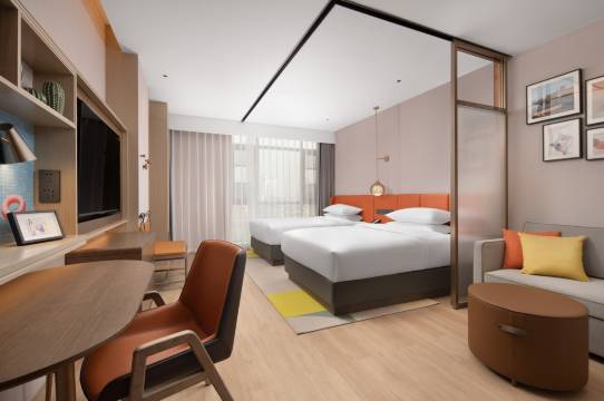 房间很大采光好,打扫得一尘不染。床垫软硬适中,睡得很舒服。距离高铁站和机场都不远。工作人员都很友善,是一次温馨的入住体验。