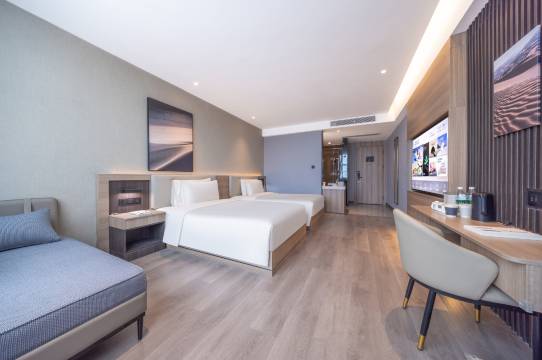 这次入住的体验远超出我的期待,让我感到很惊喜。首先服务这一块真的没话说,很热情周到,一到门口前台小姐姐就跟我们问好,办理入住的速度很快,我们有问题也很耐心的为我们解答,询问到周边美食和游玩的地方也很贴心的告知我们位置,全程微笑服务,没有一点不耐烦。其次是房间里的卫生打扫得很干净,床品舒适,隔音效果好,让人感觉到很温馨自在。最后就是有免费的接送机服务,这个就非常适合出差的朋友们,很方便快捷,用最低的成本帮我们解决了赶飞机的交通难题,直接打开了出行新世界的大门。总之性价比超高,下次还会选择这家酒店!