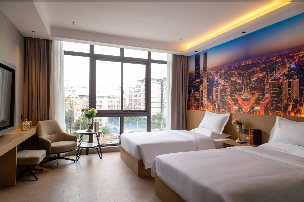 不到200元的双面江景房堪称性价比天花板!酒店外部虽有年代感,但内部干净整洁,设施崭新,双面大玻璃落地窗将美景尽收眼底。老板热情又耐心,主动指引小红船码头位置和本地美食,还会免费升级房型。位置处于县城中心,周边餐饮选择多,打车到小三峡游客中心仅10元,自驾可停地下停车场(需注意出入口坡度较陡)。卫生和服务完全超出预期,洗衣房、免费行李寄存等实用设施齐全,适合预算有限但想赏江景的游客。