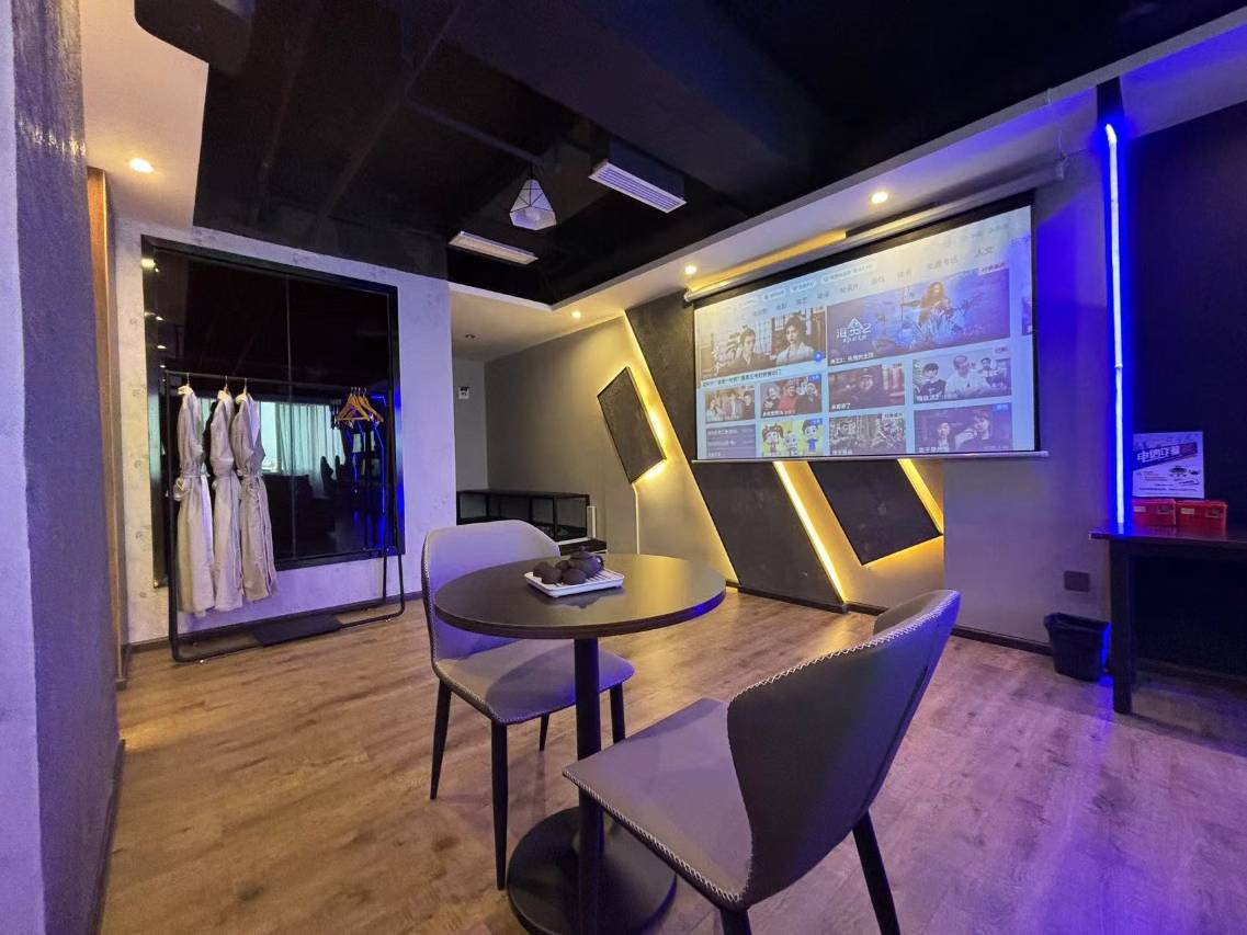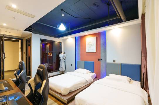 跟着家人一起住的三人间套房,房间设施齐全,空间很大,服务也很贴心,耳机音效也清晰。电竞区设备造型科幻,搭配复古砖墙,碰撞出奇妙氛围;休闲角窗景开阔,城市与远山作伴,惬意又浪漫;装修工业风混搭电竞风,让人感觉舒适又新颖。