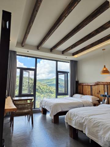 设施全又新,干净卫生,风景很美,主人非常善良淳朴,热情的请我们喝茶吃点心。正好是春茶季去的,整座景迈山都每家每户都在采茶制茶。客栈主人家是布朗族,也在忙着制茶,我们在一旁看的津津有味,整个客栈都是茶香。忙完邀请我们喝茶,聊布朗族和茶的故事。大山里有设施这么齐全的客栈真是难得。 4月雾大,下次想11月再去看云海,还会来住!