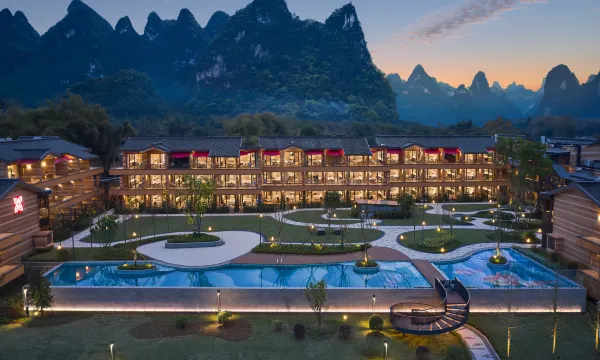 桂林阳朔腾昇希尔顿花园酒店,坐落于拥有1700多年历史的兴坪古镇旁,背倚蜿蜒似画、曲曲如屏的漓江山水;地理位置便利,可轻松抵达阳朔高铁站、漓江景区(观黄布倒影)及20元人民币背景打卡点;酒店建筑主体以自然沉静的大地色为主,与其周围的墨山静水浑然连缀,宛若隐匿于古镇中的世外桃园。店内设有125间陈设雅致的山景、江景、园景客房及套房,每间均配备半开放式衣橱及洗漱台、智能马桶及灯控设备等,全新升级的 “花园3.0版” 设施设备可带给宾客智能舒心的居住体验;酒店全日制餐厅、大堂吧、好味亭、健身房、自助洗衣服务、会议室一应俱全,让宾客在格调和亲切氛围中,享受明快热诚的“花园式”服务;超3000平方米的酒店中庭及无边泳池区域,适宜举办定制晚宴、派对或野趣十足的户外露营活动等。此外,酒店3楼的仪式观景平台,可将20元人民币背景山水胜景直收眼底,是酒店打卡观景的不二之选。