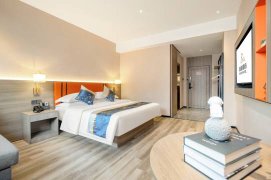 第一次预定这家店,没想到这么好!虽然是新装修不久,但没有装修的味道。房间非常干净,床品干净洁白,最喜欢他们家床垫了,很软,躺着很舒服超级喜欢。价格还挺实惠的,真是性价比很高的酒店,推荐!推荐!距离高速路口下来几百米第一眼就能看到这家店了,外表看上去都很高端,停车是真的非常方便,到前台办理入住时,前台推荐了本地的特色菜,黑山羊与河鱼,之前也有做过攻略来着,但是就是不知道怎么选,听前台小蓝姐姐推荐后,锁定了马山羊庄,羊肉是真的非常不错,口味清淡的特别适合,剩下一小盒本地羊扣,打包回来到酒店让小姐姐帮我们放冰箱冷藏,第二天吃早餐时还帮我们加热了一下,体验了家一般的温暖和舒心,入住选择选他家准没错,笔芯哟
