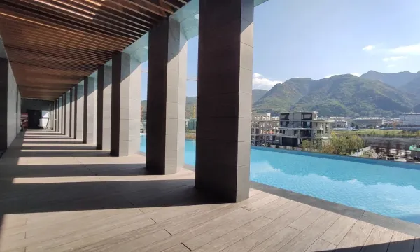酒店位于太白山脚下的叠墅区,小区环境优雅,户型设计私密性强。这次带爸妈一起避暑度假,选择了距离西安较近的太白山。房间设施和装修格调和网图基本一致,满足了我们娱乐休闲泡汤的所有需求。特别是赶上久违的一场降雨,雨中泡汤特别惬意。