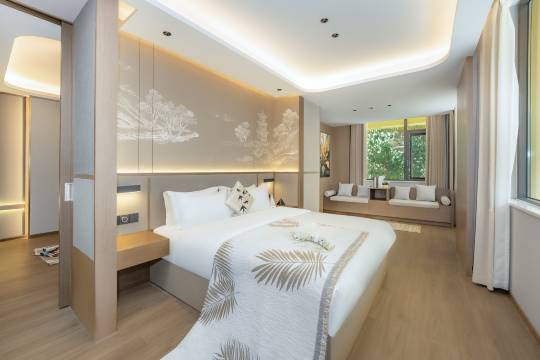 服务也特别的好,有接站服务,而且前台也很热情。房间的小度特别的好用,一叫他就会响应我的所有要求。早餐也不错,喜欢饵丝