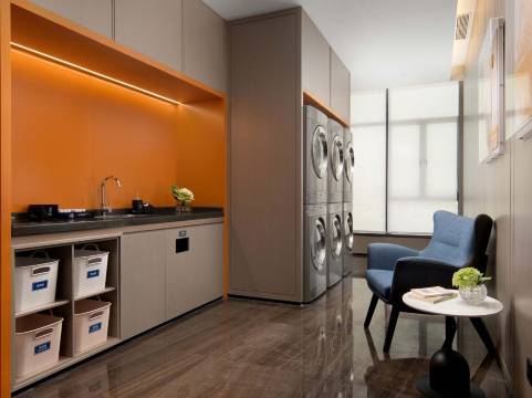 公共区域的设施也完全在线!一楼大堂的休息区装修精致,沙发柔软舒适,搭配柔和的灯光和舒缓的音乐,健身房器材齐全且维护得很干净,跑步机、哑铃、瑜伽垫一应俱全,出差间隙也能保持运动习惯;洗衣房配备了烘干一体机和洗衣液,洗烘一体超省心,前台七七服务周到,笑容很治愈~