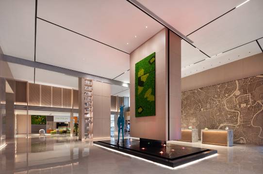 酒店环境整洁,房间布局堪称完美,优雅又不失情调,工作人员服务周到,让人无比舒心。前台大厅在4楼,高端大气上档次,行李比较多,前台小英热情主动的帮忙把行李送到房间,细节做得很好,健身房也贴心得准备了干净毛巾和矿泉水,酒店还提供了制冰机,大多数酒店是没有制冰机的,满足了客人的更多需求,总之这家酒店住的非常满意,真是推荐!