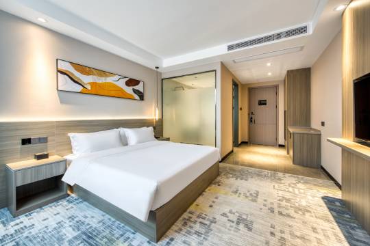 房间很干净整洁,床品都是一客一换,洗漱用品都是一次性的,非常干净卫生,入住体验非常好,下次出差还会入住哦。
