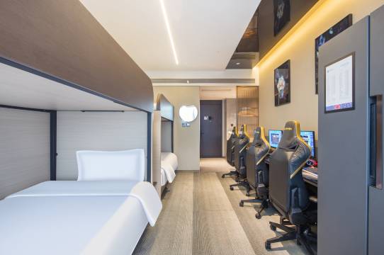 体验感非常哇塞的一家酒店,之前出差都住商务酒店,抱着试试的态度定了一家电竞酒店,结果要出乎我的预料,首先前台服务态度彬彬有礼,迅速办理完入住,进到房间更是让人眼前一亮,超大的飘窗,风景格外的好,床品卫浴也一点不输传统酒店,酒店刚开业一年多,到处都很新,卫生也很干净,而且房间电脑运行速度很快,办公很是方便,自己的笔记本完全没用上,哈哈