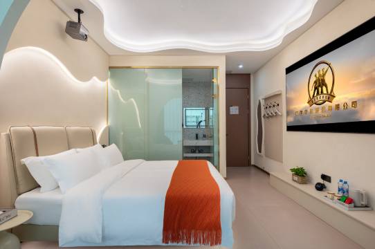 星空顶很漂亮还有三楼小院非常nice,设备比较新齐全,每层楼都有电梯,二楼还有健身房,环境好,闹中取静的好地方,离雕塑瓷厂陶阳新村这些核心打卡点,三楼小院里又格外清净🌿 晚上逛完市集回来,能在三楼院子里小坐闲聊,晚上的夜市真的是琳琅满目,很多陶瓷摆件,不管是家庭出行还是朋友小聚也不会无聊,惬意到不想走。卫生棒,卫生间干湿分离的。服务很贴心,前台还会给旅游攻略提出恳切的建议👍,30块钱租了一个电单车到处都可以去,特方便。民宿的床垫配置特好,软硬适中(超过很多高级酒店)老板接站方便省心宝藏民宿,果断收藏。