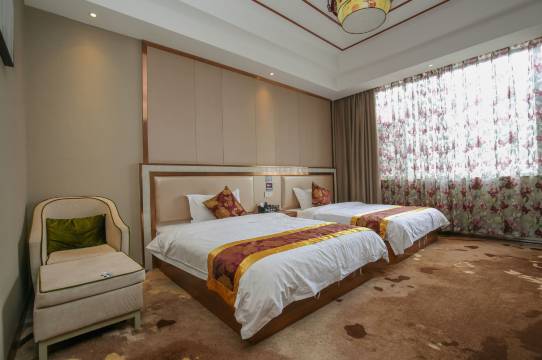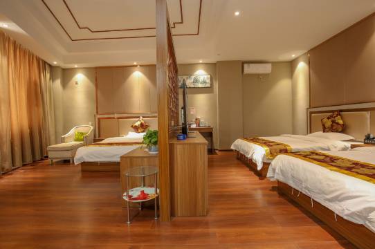 3张大床 给力 ,房间很大,还有个麻将桌 ,酒店就在紫陶街旁边 ,晚上方便逛街 很值得推荐 3个人住 价格合理 下次再来
