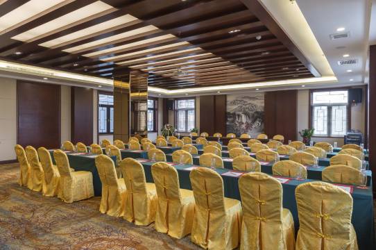酒店建筑面积10000㎡,包含中式特色客房、高端中式别墅度假区以及雅致四合院,配套设施齐全。酒店设有大型宴会厅、风格别致的餐饮包间、规格齐全的多年功能厅会议室,以及洗浴SPA会所、KTV包房等设施,满足宾客休闲度假、会议、社交的需求。
