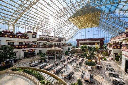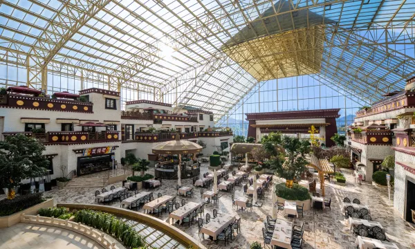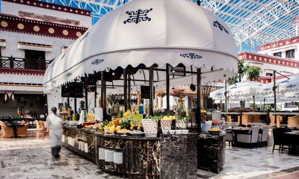 融入圣洁的雪域高原美景,精彩演绎藏地的别样风情。酒店设计极富张力,独特的建筑风格使之成为拉萨新地标,总建筑面积约22万平方米,也彰显出酒店的不凡品位。