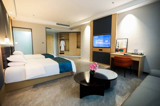 每次来都会选澜海御庭,前台服务特别热情有种回家的感觉。早餐他家做的特别到位续餐到11点。床品很柔软亲肤,有加湿器个人特别喜欢,还有客房内有一次性泡脚包,出差在外有这个待遇太满足了👍房间很宽敞又干净,窗外景色也好看🫰