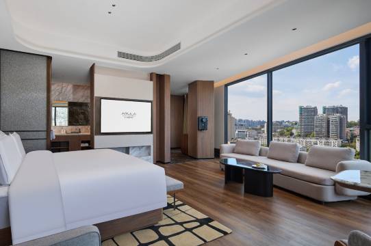 很意外来这旅游预定到了五星级品质的酒店,客房完全是智能控制,房间格局非常好,居然还有硕大健身房,早餐丰富,客房服务又很贴心,说不完的好。因为寄存行李啥的,还麻烦了下前台小姐姐,非常热情对待,主要还又甜又美。下次还住