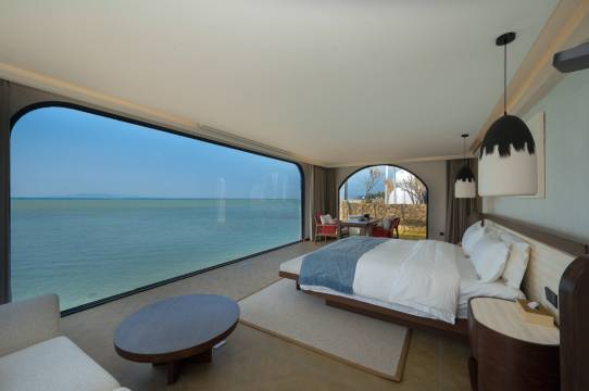 海景很漂亮! 我们淡季去的!人少…..早饭再提升一下就更完美了!我们住的270度海景房 价格1800多 贵是贵了点!但风景确实漂亮 !体验一晚很美哦….