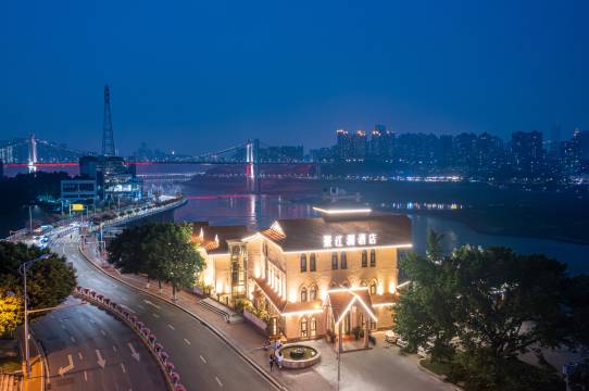 酒店位于九龙坡区直港大道,长江之滨,一线江景,酒店距解放碑CBD,国际会展中心,约15分钟车程。同时,紧邻九龙坡区杨家坪商圈、华润万象城,酒店百米内汇聚了10多条公交线路,还有轨道2号线,位置优势优越。直港大道美食一条街让您畅享重庆美食。