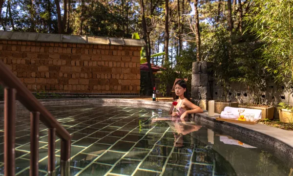 杜鹃王森林温泉酒店,位于云南省腾冲市石头山杜鹃王古木博览园对面,距离和顺古镇10分钟可抵达。这是一家花园式温泉度假酒店,拥有36个露天温泉泡池,每个房间都配有私人露台和私汤泡池,私享高原原脉碳酸泉,温度舒适、富含多种矿物质,在这里您可以倾听鸟鸣、溪流和风的和谐之声,感受大自然的魅力;在古木、温泉中舒缓疲惫的身心,让大自然的力量滋养您。 酒店拥有优美宜人的外部环境和恬静简约的内部装修,选配可靠舒适的家居家具,选用质量上乘的洗浴用品,设有大床房、双床房、家庭房、独栋别墅,提供免费双早、欢迎果盘和温馨热情的服务,带给您更舒适的入住体验。远离喧嚣,独享一方宁静。