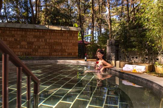 公共温泉区也去体验了一下,真的像是在森林里泡汤!安安静静的,耳边只有鸟叫和风声,空气里都是负离子的味道,整个人彻底放松下来。