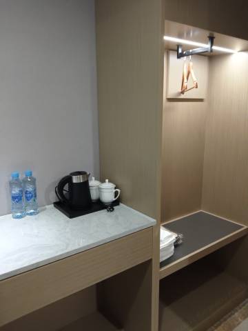 不过连续住两晚,第一天用过的一次性拖鞋,打扫房间也不给更换,服务意识还是有待提高!房间廊道的感应灯实在是太敏感了,稍微动下就亮灯,关键是还特别亮堂刺眼,严重影响睡眠质量,就不能换个度数低点的感应灯吗?