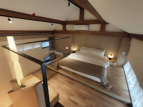 整体空间充满设计感,入住的loft干净整洁,一楼是客厅与洗手间/浴室,二楼的榻榻米床舒适温馨,贴心提供了记忆枕头和棉花枕头,满足不同睡眠习惯。