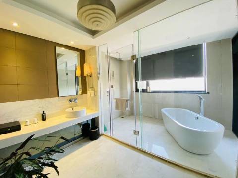 在网上随便订的,结果太惊喜,有大大的浴缸,环境不错,酒店地理位置也好,餐厅的食物也不错,太惊艳了