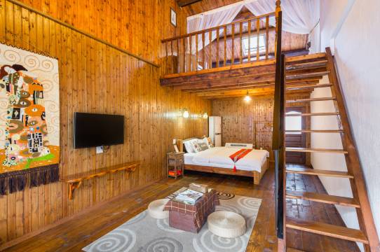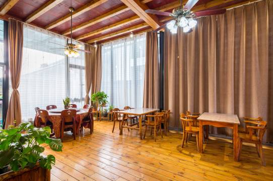 莫干山印象西坞里酒店是以仿古洋家乐风格装修的民宿,内部装饰简约、复古却不失情调;楼梯通道及客房地面均以松木楼板做铺装,夏日不潮、冬日保暖;客房布置以环保为理念,房间立面及吊顶以杉木为主材;房型种类多样,宾客临窗可将满山绿色尽收眼底,房内配备32寸液晶电视机、大1.5P冷暖空调、吹风机、电热壶等设施,完善齐全。