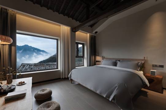 优点:空气很好,风景很好,服务很好,设施很好,餐厅好吃,管家沟通回复快,山里湿度很高的情况下,被子也不湿,露台在存在很高的地方,低头见景,早上一开门就是森林的味道,特别好闻。早餐配置合理,营养丰富,晚饭连吃两天,整体菜品都很好,种草端午茶,吃完饭再到村口散个步,真的很惬意。因为有台风,就能看到山里的天气时好时坏,瞬息万变,管家特别贴心,走的那天想去走走,管家推荐我们走古道,还贴心的让我们带伞,事实证明确实有必要