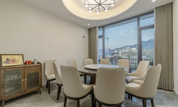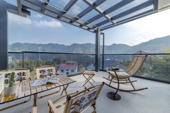 民宿在九亩村党群服务中心边上,海拔较高,很适合避暑。房间干净整洁,四层还有个大露台,不管是喝茶还是赏景都特别惬意,露台对着峡谷,日出日落都能看到,这里离金钱松森林公园很近,步行就能到。周边游玩的地方也多。饭菜是妈妈的味道,民宿小而精,民宿5间房,比较安静。推荐!!