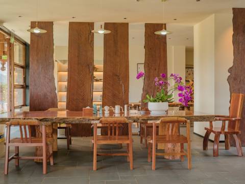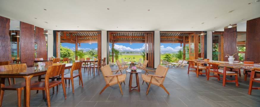 客栈面向一片荷塘和稻田,光这个咖啡厅的位置,我们就能坐一下午!