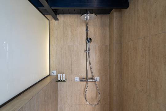 房间还是Loft复式和露天小阳台,浴缸对着大海,泡澡的时候很惬意~