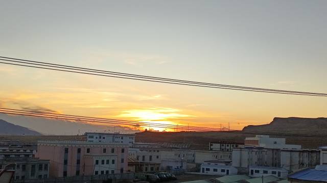 就是农家乐,在道路边上,没电梯,干湿未分区,但房间还比较干净,有供氧,最大亮点是可以方便看日出日落。日落是在后面山坡上拍的,日出是在房间窗外拍的。