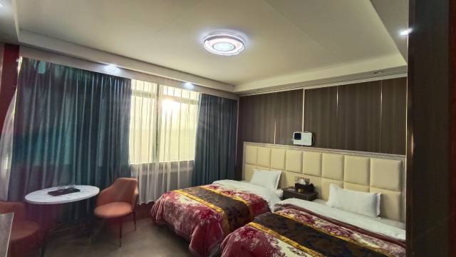 酒店的位置非常好,坐在房间里就能看到两座很漂亮的雪山,酒店的设施也很完全,加湿器,制氧机,电取暖器都有。总体不错