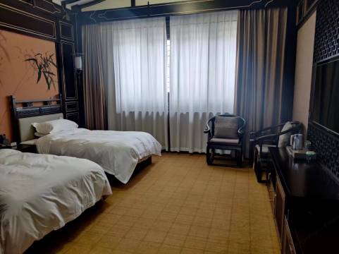 景区内酒店。导航到莒县人民会堂停车,过桥右转没几步就到了,非常方便。装修也是仿古风格,和景区非常统一。