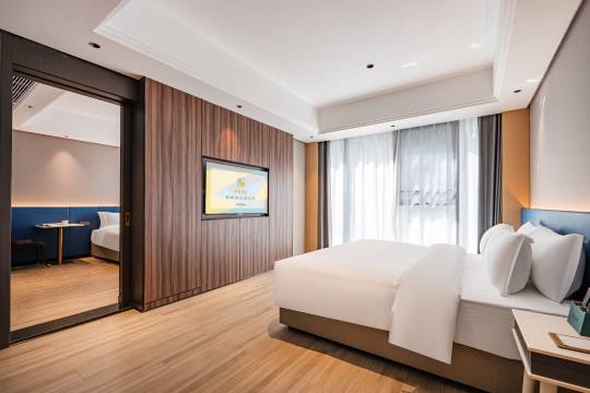 酒店位置非常好找,下了高铁有专门的车辆接送。门口停车也非常方便,还有充电桩。服务人员态度非常好,房间宽敞明亮,干净卫生,卫生间干湿分离,早餐有好吃的米粉,下次还住在家。