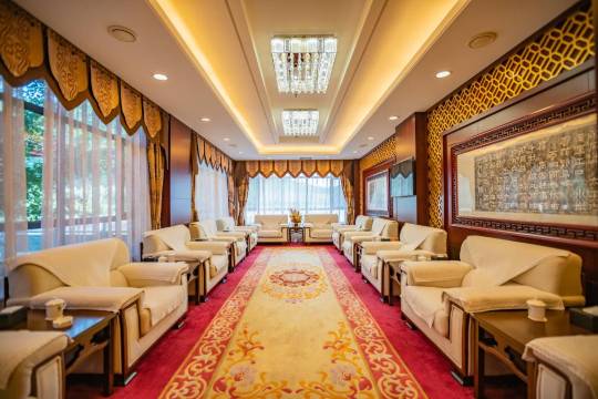环山临水,环境幽静,远离城市喧嚣,三进宫殿设计,宏伟庄重,房间宽敞明亮,设施齐全,宫廷级服务,大众消费,是休闲的好去处。
