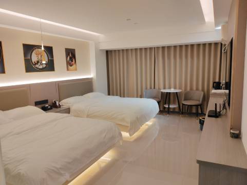 房间可以说超好,百多元的价位,完全不输几百元酒店的级别,房间的装潢设施甚至很多几百元的酒店都达不到,一次性的拖鞋,洗漱用品全套都配的很齐,而且看着质量也非常好👌🏻给孩子用也很放心,孩子在里面玩耍丝毫不拥挤!而且老板人也超好,有求必应,用品也好,房间配的矿泉水也好,没有了说一声,老板也不毫不吝啬,很有格局的人👍🏻并且停车也超方便,总之大赞!
