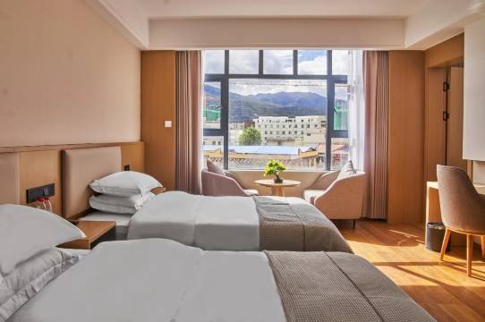 酒店水件很好,卫生间干湿分离,床品舒服,干净洁白。房间宽敞明亮,家具新、实用、温馨。有电梯和酒店专用停车场。灯光柔和、明亮互补,开关设置方便。热水大且热。热水采用恒温开关,好控制水温。也不会受前一个人洗澡后,水温下降。早餐很丰富,除了有包子、馒头、烧卖等,还有4个素菜还有炒米粉、炸薯条、油条、酥油茶。