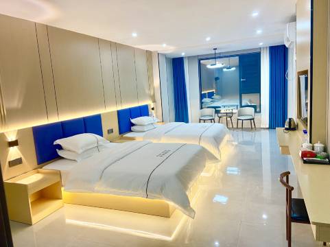 性价比很高,两张大床,茶台,巨幕电视