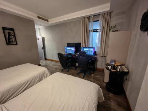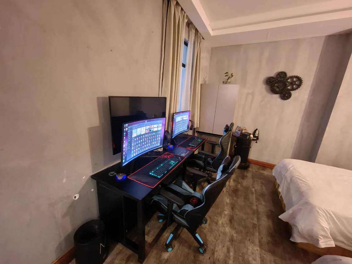 地理位置不错,附近可以逛街。打游戏的设备齐全,网速也跟得上,看电影也不卡,性价比还可以。
