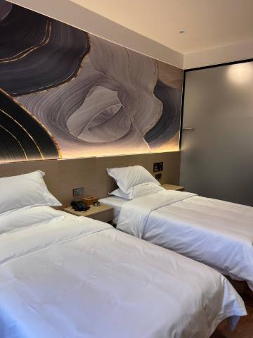房间还不错,干净卫生,配备齐全,有自助早餐,楼下是洗浴中心,入住可以免费洗浴,关键是价格便宜实惠,离县城也不远,晚上吃宵夜也方便